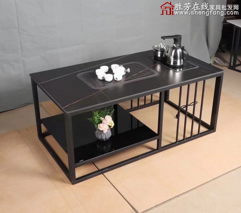 勝芳巖板茶臺(tái)批發(fā)巖板茶臺(tái)火燒石茶臺(tái)一體茶臺(tái)巖功夫茶桌 泡茶桌飲茶桌品茶桌巖板茶幾辦公茶幾家用茶幾鐵藝茶幾 宜美家具